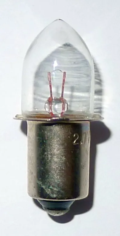 2,7V 0,15A 0,4W zaklantaarnlampje 13x28mm olijfvormig pre-focus PR9 met kraagfitting P13.5s