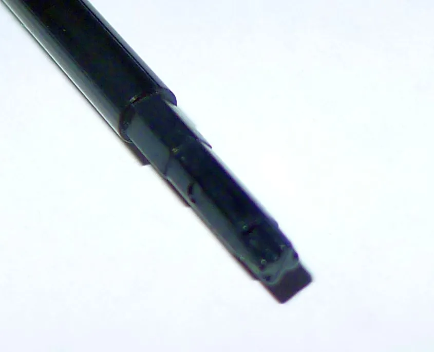 Trimgereedschap met een plastic kruiskop en hex stift aan één kant en een metalen plat blad aan de andere kant.