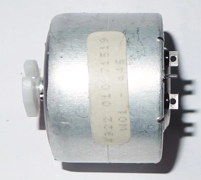 Philips 4822 361 30158 motortje met meenemer, gebruikt als besturingsmotor voor loopwerkpositie in veel 2e en 3e generatie Video 2000 modellen.