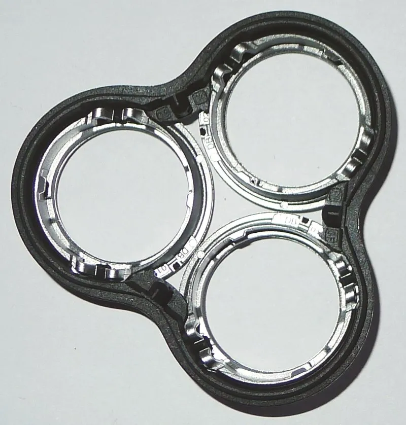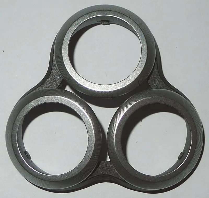 Philips 4222 036 28791 Bovenzijde van het scheerapparaat waar de scheerkoppen in liggen.