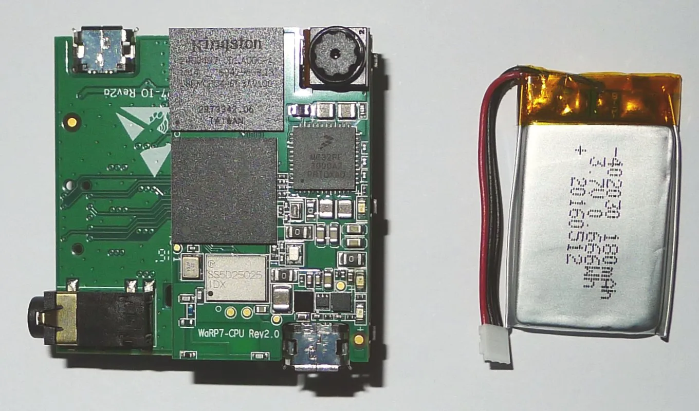 Element14 WaRP7 development board, bestaande uit CPU board 2.0, I/O board 2a en een Li-ion accu (geproduceerd in 2016, werking van de accu wordt niet gegarandeerd).