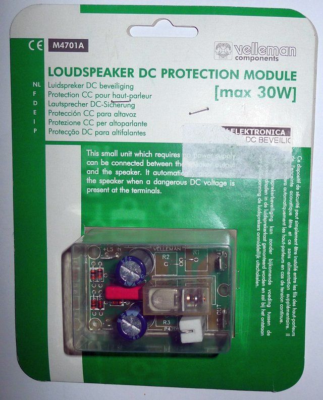 Gebruiksklare DC beveiliging voor luidsprekers tot 30W.