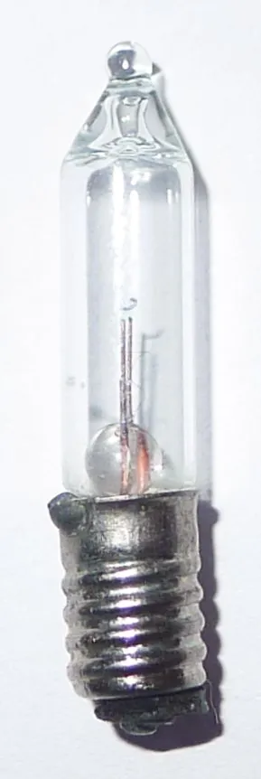 Langwerpig lampje 5V 80mA met E5.5 fitting. Voor decoratie, poppenhuizen en dergelijke.