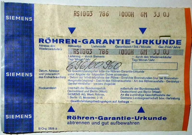 Siemens RS1003 RF beam power tetrode. Ongebruikt uit oude voorraad.