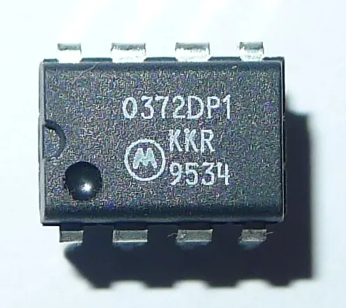 Motorola TCA0372DP1 dual power opamp in DIL-8 behuizing.